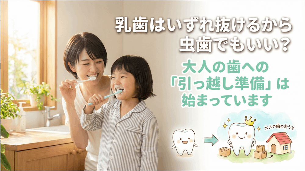 今日お伝えしたいことはひとつ。「どうせ抜けるから」という考えは、お子さんの将来の歯にとって、とても大きなリスクになり得ます。でも怖がらないでください。ちゃんと知れば、今日からできることは必ずあります。一緒に「大人の歯への引っ越し準備」を始めましょう。
