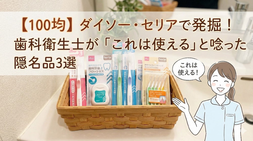 そこで今回は、元・虫歯だらけの歯科衛生士である私が、ダイソーとセリアの広〜い店内を歩き回り、「これは使える!」とプロの目線で唸ってしまった”隠れ名品”を3つ、厳選してご紹介します。
