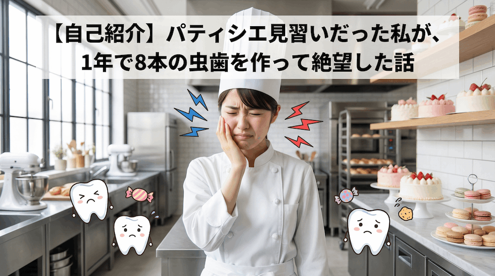 長くなりましたが、これが私の自己紹介です。パティシエ見習いとして「食べる幸せを作る」はずだった私が、虫歯で絶望し、歯科衛生士として「食べる幸せを守る」道を選んだ物語。
