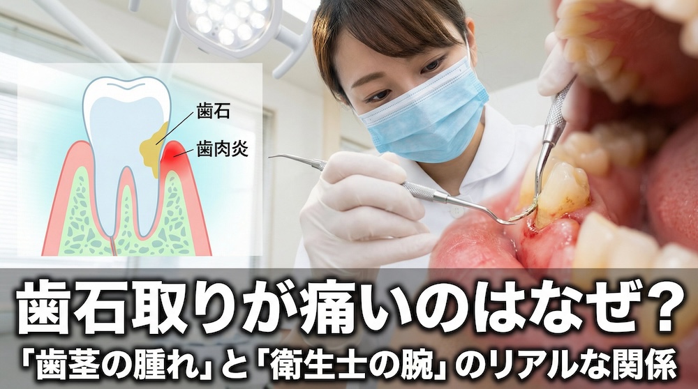 - 歯石取りが痛い最大の理由は「歯茎の炎症(歯周病)」であり、衛生士の腕とは別の話が多い